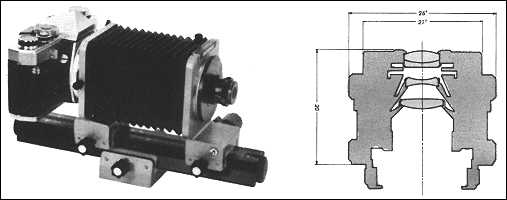 The Objective Lens Mount PM-MTob is required in order to mount the lens on the Auto Bellows. A Lieberkühn Reflector and a Mirror Housing were made to fit this lens.