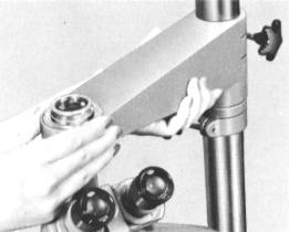 Then raise the arm by about 1mm so that the Adapter L floats off to the Eyepiece. Take care not to allow the periphery of the Eyepiece or light shield tube to come into contact with the edge of the camera mounting hole. Then raise the collar to support the arm.