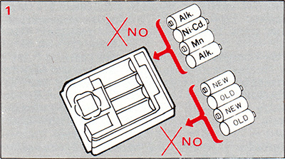 (1) LOAD THE BATTERIES.