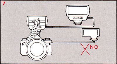 * The signal light blinks repeatedly also at overexposure, so be sure the subject distance is within the TTL AUTO range shown on the exposure table.
