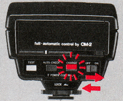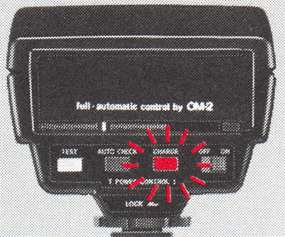 If you want to take pictures with existing light, turn the Control Power off; the charge lamp goes out and the ring flash will not fire even when the capacitor is fully charged.