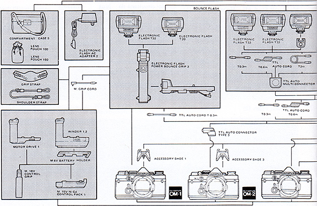 The Power Control fits into Accessory Shoe 3 (for the OM-2 camera), Accessory Shoe 4 (for the OM-2N), or the built-in accessory shoe on the OM-2SP, OM-3, OM-3Ti, OM-4 and OM-4Ti. It can also be used on the Power Bounce Grip 2, and connected via a TTL Auto Cord T to the TTL Auto Connector 3 (for the OM-2), the TTL Auto Connector 4 (for the OM-2N), or the built-in connector on the OM-2SP, OM-3, OM-3Ti, OM-4 and OM-4Ti.