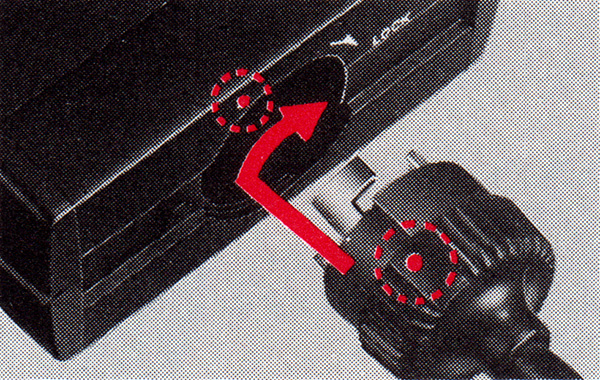 Align red index marks, press and rotate the connecting plug until it stops.