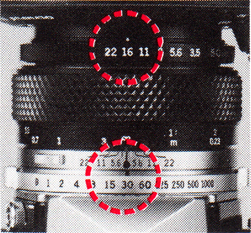 By positioning the calculator panel in reverse and setting it to ‘G. No. 10’ you can read effective aperture range at a glance. See page 23.