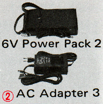 Power Source: (1) 1.5V “AA” battery × 4 (incl. NiCd) inside T Power Control 1. (2) 1.5V “C” battery × 4 (incl. NiCd) inside Power Bounce Grip 2. (3) AC house current via Electronic Flash AC Adapter 3. (2) and (3) are activated by on/off switch of power-control unit.