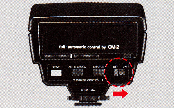 With the calculator panel in the ‘full automatic control by OM-2’ position, turn the power switch to the “ON” position.