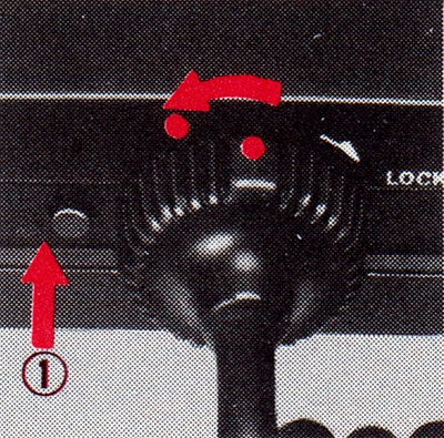 To remove the plug: (1) Press release button (2) Turn plug towards the release button.