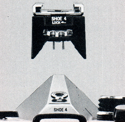The Power Control has a standard size accessory foot, but with 2 extra contacts in addition to the central one for a hot shoe. In a suitable Olympus hot shoe, these contacts protrude and mate with contacts in the shoe. In a plain shoe, the extra contacts are retracted and do not make contact with the shoe. It is probably best to avoid shoes from other manufacturers such as Canon and Nikon that also use extra contacts. You must not use the Power Control in a simple metal accessory shoe, because this will make a circuit between the main contact on the base of the foot and the 2 contacts at the side. There are accessories from manufacturers such as Hama that will accept the foot of the Power Control and provide a lead with a standard PC plug.
