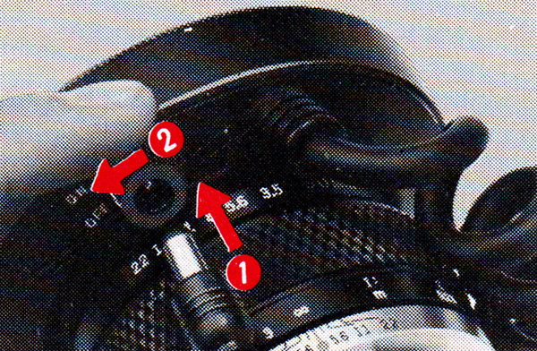 If the signal stays lit (the ring flash did not fire): The subject is bright enough and the picture was taken properly by existing light. The electronic flash was not needed. (In case exposure must be achieved by flash illumination: Turn the aperture ring until the meter needle points to 1/30 sec. or slower, and shoot.)
